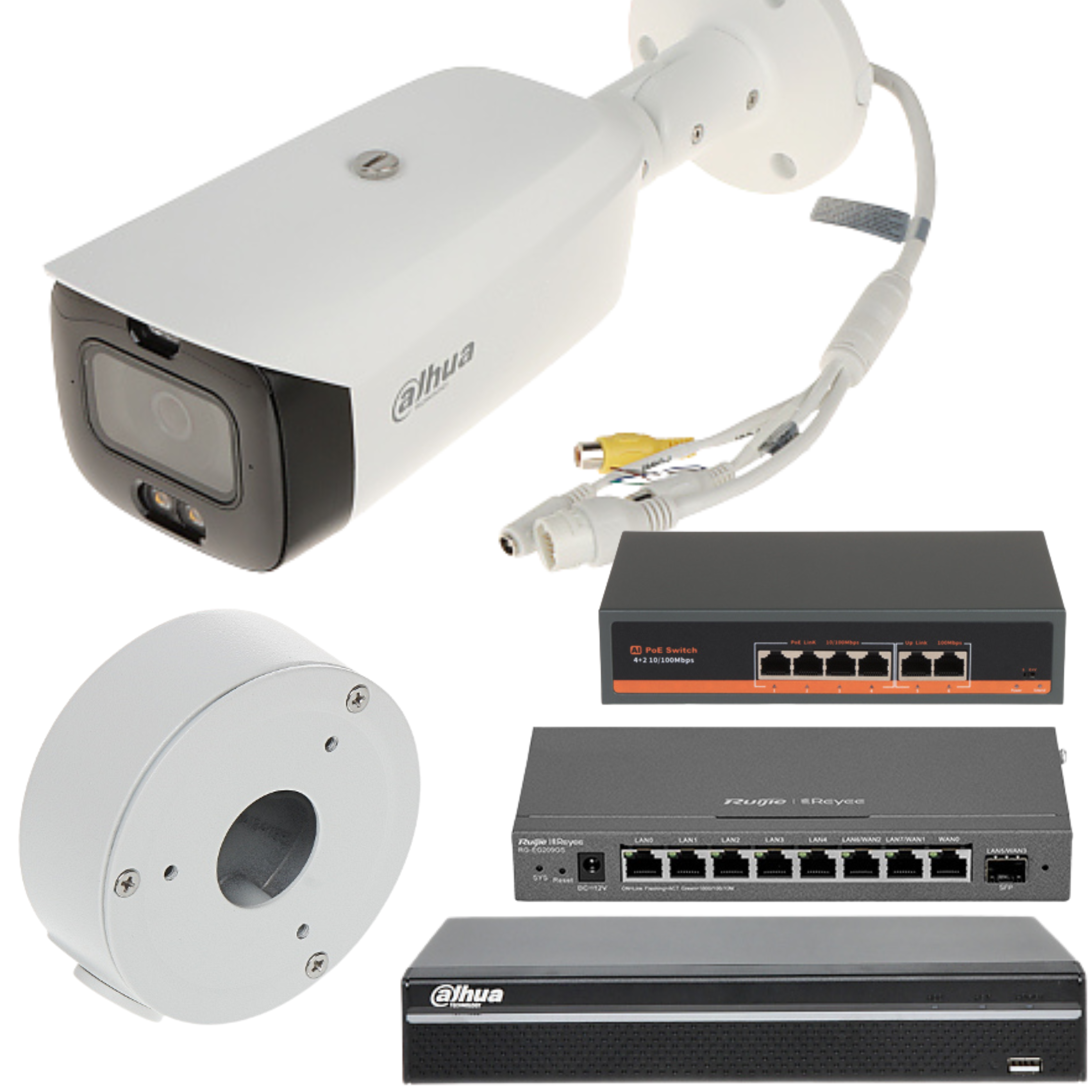 Kompletny zestaw monitoringu wizyjnego oparty na sprawdzonych komponentach marki Dahua i Seagate. Idealny do monitoringu sklepu, biura, domu lub posesji. Dzięki rozdzielczości 4K i funkcji Full-Color (kolorowy obraz także w nocy) zapewnia wyraźny obraz i wysoką skuteczność identyfikacji osób oraz zdarzeń.